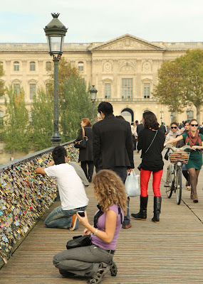 Schatz, schau mal, wie romantisch! So viele Paare haben sich hier in der Cité d'amour ihre Liebe versprochen und ihr auch gleich ein Denkmal gesetzt. Jetzt können alle Leute diese schönen Liebesschlösser bewundern.