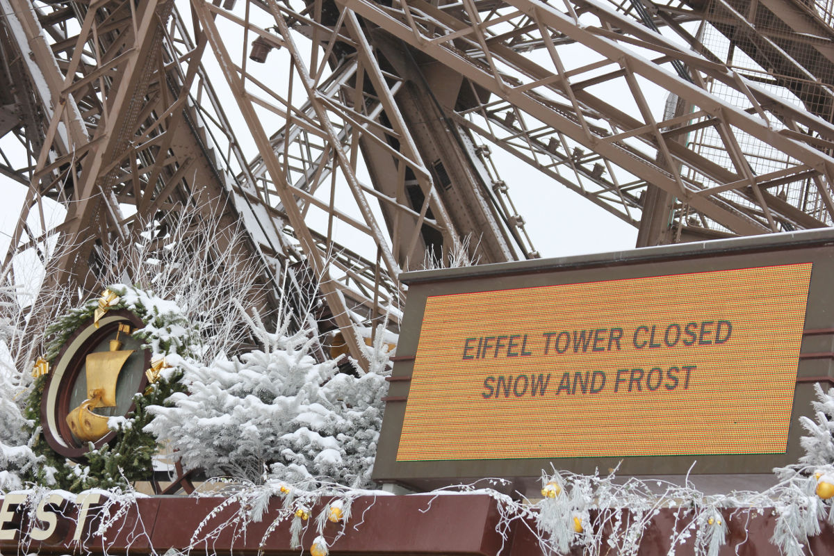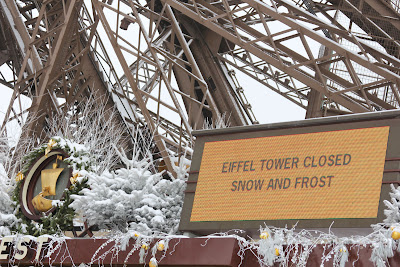 Allerdings war auch hier kein normaler Betrieb mehr möglich. Wahrscheinlich weil alles zu glatt war, wurde der Eiffelturm geschlossen.