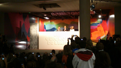 Die einzige bemerkenswerte Veranstaltung, in die ich es geschafft habe, war im Palais de Tokyo. In dieser architektonisch wirklich erstaunlichen Galerie hatte sich für diesen Abend die Mannschaft von "Les guignols de l'Info" einquartiert. Hierbei handelt es sich um eine sehr bekannte und erfolgreiche tägliche Sartiresendung im französischen Fernsehen, in denen Marionetten die Hauptrolle spielen. Sie traten an diesem Abend dort auch live auf.
