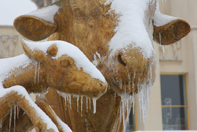 Auf dem Trocadéro lief allerdings der Springbrunnen noch, anderswo hätte man ihn sicher vorsichtshalber abgeschaltet. An ihm haben sich lustige Eisfiguren gebildet.