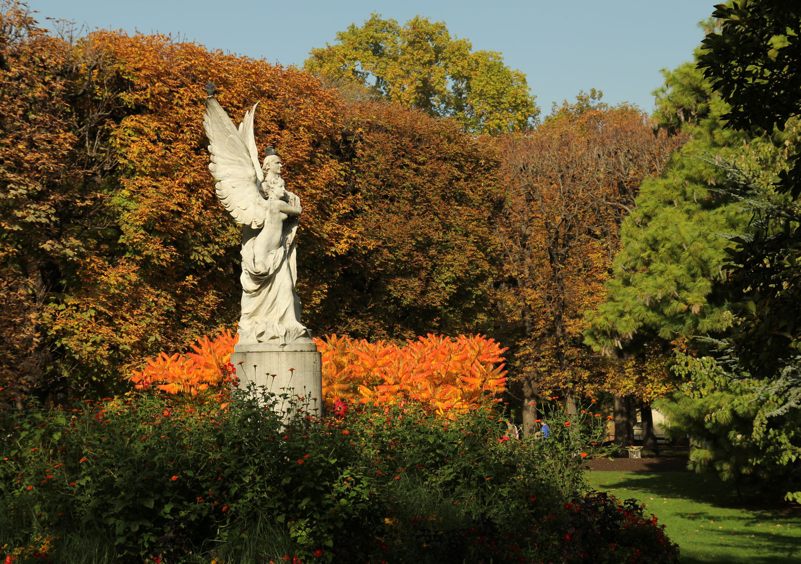 Nachdem es hier die gesamte letzte Woche geregnet hat, ist am Sonntag noch einmal die Sonne heraus gekommen und alle Leute konnten eine wunderschöne Herbstzeit genießen. Das Laub der Bäume war vielerorts - wie hier im Jardin du Luxembourg - schon malerisch herbstlich gefärbt.