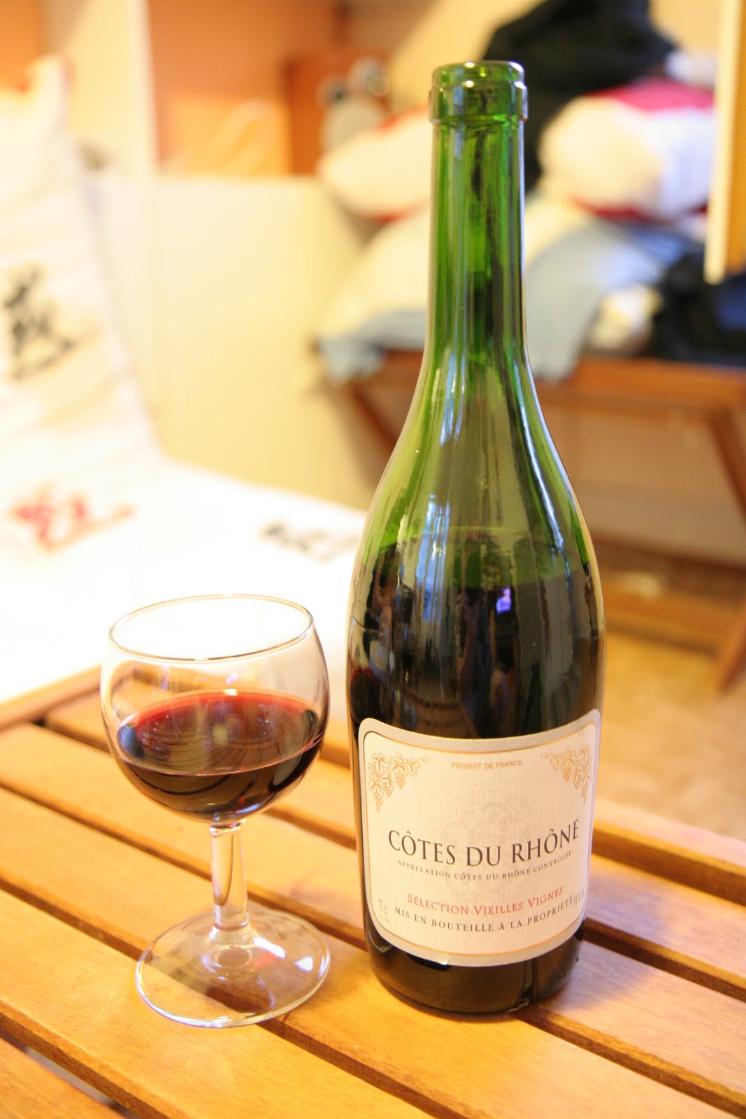 Weinkauf in einem Pariser Supermarkt: Die Franzosen sind ja durchaus dafür bekannt, dass sie gerne (und viel) Rotwein kosumieren. Auch wir wollten zu unserem Abendessen eben diesen genießen und begaben uns für dessen Erwerb in einen der vielen kleinen Supermärkte der Umgebung. Da standen wir nun vor einem sehr langen Regal, das mit französischen Rotweinen gefüllt war. Wonach sucht man denn jetzt einen guten Wein aus? Nicht einmal unsere sonst funktionierende Entscheidungshilfe - das Aussehen der Flaschenetiketten - half uns weiter, denn gefühlt die Hälfte der Weine waren von den Ufern der Rhone - Côtes du Rhônes. Nachdem wir eine recht lange Zeit vor dem Weinregal gegrübelt haben, entschieden wir uns dann doch eher spontan für diesen hier: