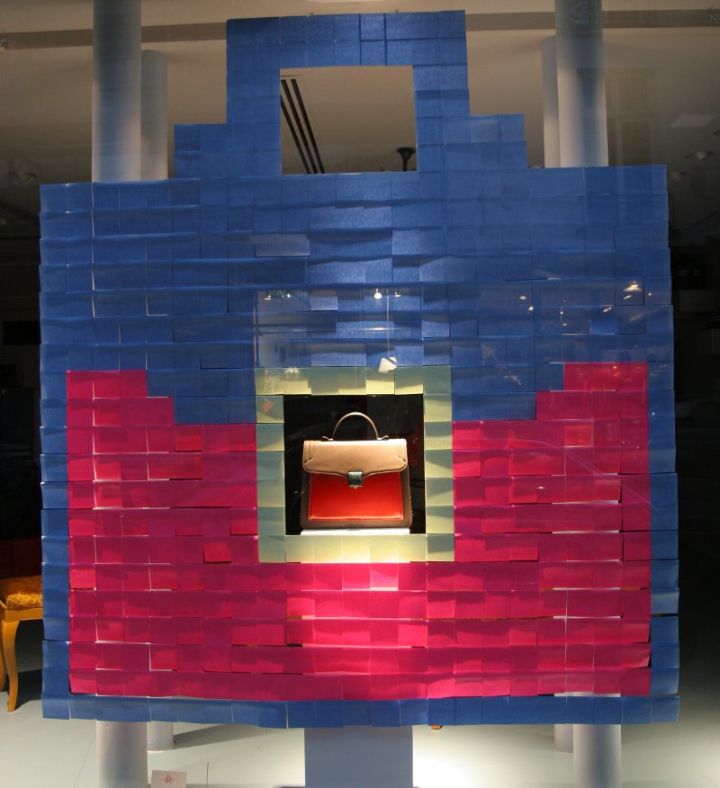 Post-it-Krieg aufmerksam geworden. Wo genau es angefangen hat, weiß keiner mehr so genau, aber bekannt ist es geworden durch ein Duell zwischen Ubisoft und BNP Paribas, deren Mitarbeiter begannen, ihre Wolkenkratzer in La Défense zu verschönern. Die entsprechenden Geschäftsviertel liegen ziemlich weit außerhalb und ich habe von dem Zirkus leider noch nichts gesehen. Aber der Trend breitet sich aus und auch in Deutschland soll es schon Scharmützel geben. Hier haben auch die Einzelhändler die Zeichen der Zeit erkannt und damit begonnen ihre Schaufenster entsprechend zu schmücken.