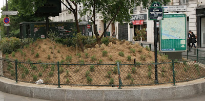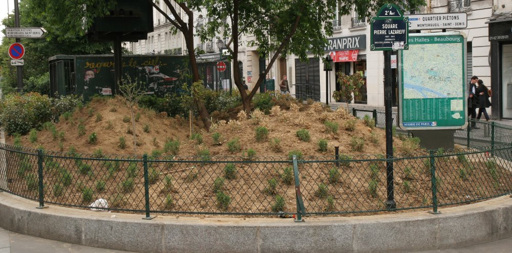 Auch hier möchte ich insbesondere auf die Erdwälle und Gräben hinweisen. Bei diesen handelt es sich nämlich um eine Taktik der Behörden, die verhindern soll, dass sich die Leute dort wieder ansiedeln. Ein viel kleineres Lager, wahrscheinlich von nur einer Familie, gab es vor kurzer Zeit auch innerhalb von Paris gleich bei mir um die Ecke. Dieses wurde in einem Blumenbeet direkt auf der Straße eingerichtet. Hier haben die Behörden viel schneller reagiert und auch die gleiche Taktik angwendet: es wurden Erdwälle aufgeschüttet, wo vorher noch eine Ebene war.