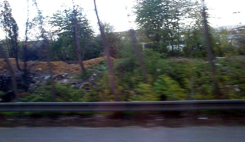 Auf meinem Arbeitsweg fuhr ich täglich an zwei solchen Lagern vorbei, die direkt an der Autobahn liegen. Es gehört für mich schon zum Alltag, dass es direkt in meiner Umgebung Menschen gibt, die so leben. Vor ein paar Wochen wurde eines dieser Lager geräumt. Für den vorbeirollenden Verkehr war das ein Spektakel. Durch Schaulustige wurde der Verkehr verlangsamt. Die ehemaligen Einwohner des Lagers standen daneben und haben zugesehen, wie schweres Baugerät ihre Habseligkeiten zermalmte. Die Reste habe ich versucht, mit meiner Handykamera an einem der nächsten Tage aus einem schnell fahrenden Bus zu fotografieren.
