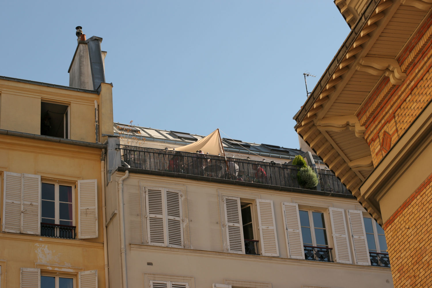 Eine Schule mit dem Wappen von Paris als Mosaik.